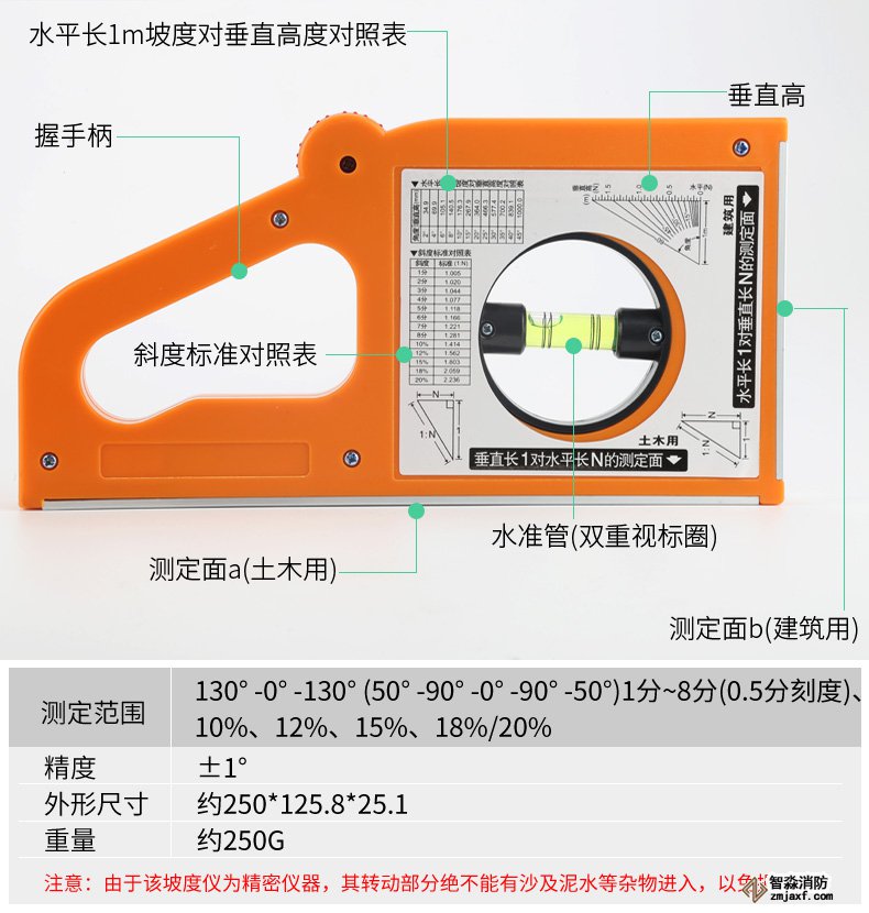 數字坡度儀量程0-90°精度0.1°檢測地面坡度是否符合消防規范