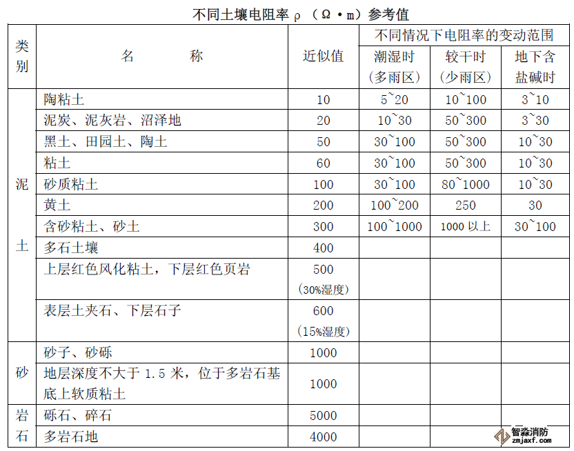 本案例測(cè)試的為沙質(zhì)粘土,附土壤電阻率參考值: