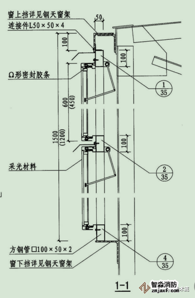適用于工業(yè)建筑(廠房及倉庫)的縱向排煙天窗。