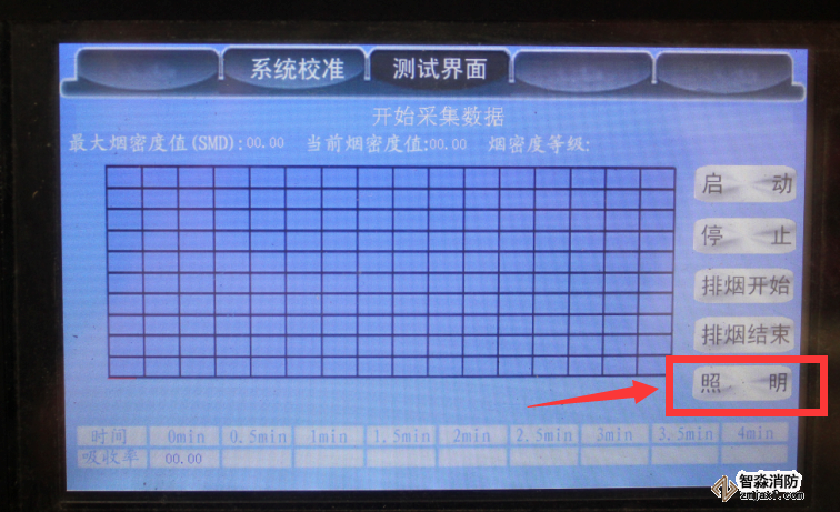 8.7試驗過程中可點擊照明按鍵打開照明燈觀察后面的字是否清楚。再次點擊照明按鍵就會關(guān)閉照明。