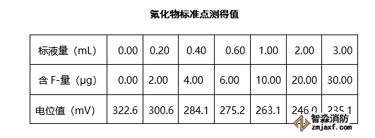 答:現在都不用半對數坐標紙來畫了,而是用Excel表來做。即先把數據輸入,選擇做xy散點圖,x軸為log(F-)濃度,y軸為電位值,在圖標上的任意一個數據點上右鍵--添加趨勢線--顯示方程和R2就可以得到校準曲線的回歸方程y= -bX+ a,再代入樣品電位,便可計算出樣品濃度。這個a一般在250-350之間,b應該在56~60之間,R2一般應在≥|-0.999|。根據上述氟化物標準點測得值用Excel繪制的校準曲線如下: