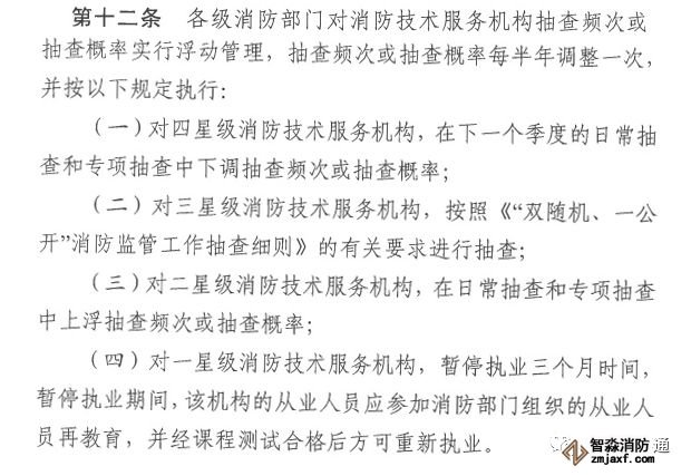 第十四條 這條規(guī)定你想到什么?我們大家都熟悉的車輛駕駛證積分規(guī)則!每個周期結(jié)束還可以重新記分,這個也是大膽的借鑒和放權(quán),消防技術(shù)服務(wù)機構(gòu)有問題不會把你一棍子打進深淵,允許你犯錯,但是有底線,本條規(guī)定個人認為還需要配套的扣分處罰支持,相信會有的。