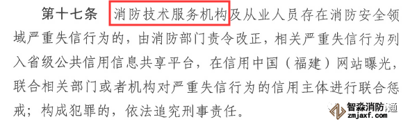 第十七條 消防從業(yè)人員違法成本加大,把人的違法問題解決了,很大程度上就解決了消防服務(wù)的問題。