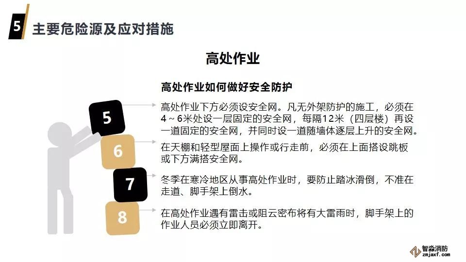 5、高空焊割作業(yè)時,作業(yè)地點下方10米范圍內(nèi)嚴禁嚴禁有人停留或行走,嚴禁存放易燃易爆品。