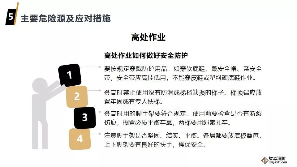 2、用梯(凳)作業(yè)時,扶梯(凳)人員必須注意自己周圍的環(huán)境,確保退路暢通并防止高處物件掉落傷人。
