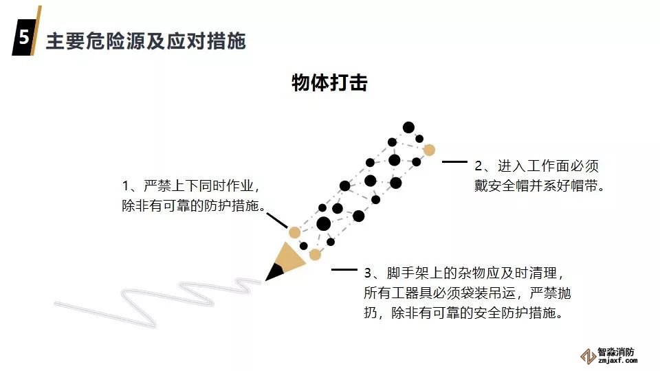 4、作業(yè)平臺搭設(shè)必須符合規(guī)定,牢固可靠,平臺下2m范圍不得堆放物料;作業(yè)時,平臺下方嚴禁行人穿過。