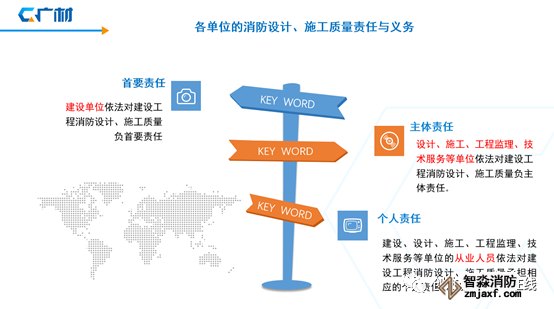 ?2009年4月30日,《建設(shè)工程消防監(jiān)督管理規(guī)定》(公安部106號令)規(guī)定實施建設(shè)工程消防設(shè)計審查驗收職責的具體辦法。“第三條 建設(shè)、設(shè)計、施工、工程監(jiān)理等單位應(yīng)當遵守消防法規(guī)、國家消防技術(shù)標準,對建設(shè)工程消防設(shè)計、施工質(zhì)量和安全負責。公安機關(guān)消防機構(gòu)依法實施建設(shè)工程消防設(shè)計審核、消防驗收和備案、抽查。"