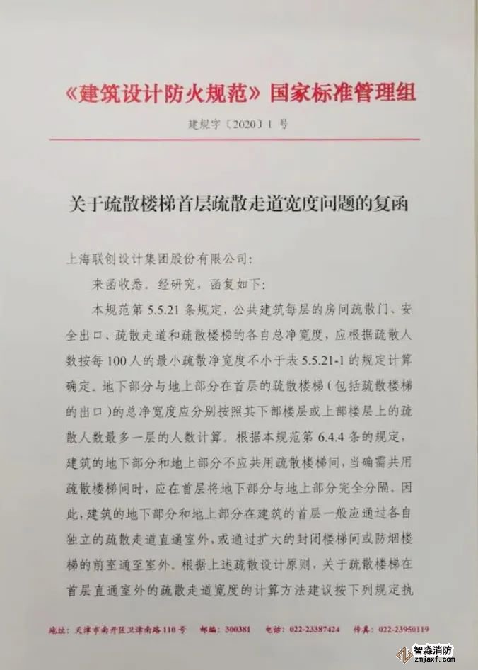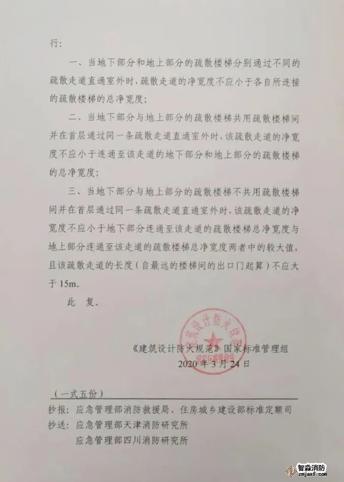 關于疏散樓梯首層疏散走道寬度問題的復函