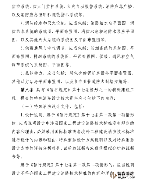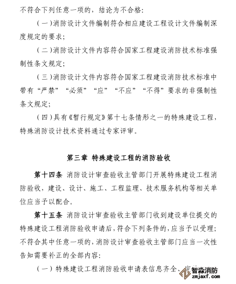 (三)消防設(shè)計(jì)文件符合國家工程建設(shè)消防技術(shù)標(biāo)準(zhǔn)(具有本規(guī)定第十七條情形之一的特殊建設(shè)工程,特殊消防設(shè)計(jì)技術(shù)資料通過專家評審)。