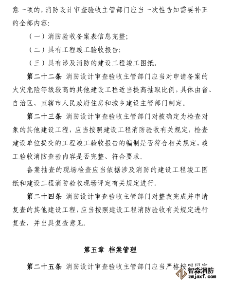 縣級以上地方人民政府住房和城鄉(xiāng)建設(shè)主管部門(以下簡稱消防設(shè)計(jì)審查驗(yàn)收主管部門)依職責(zé)承擔(dān)本行政區(qū)域內(nèi)建設(shè)工程的消防設(shè)計(jì)審查、消防驗(yàn)收、備案和抽查工作。