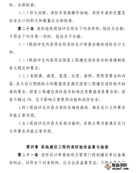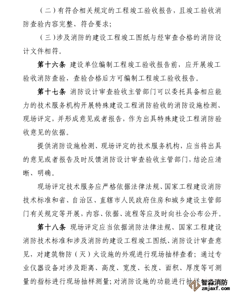 第三十條 消防設(shè)計(jì)審查驗(yàn)收主管部門應(yīng)當(dāng)自受理消防驗(yàn)收申請之日起十五日內(nèi)出具消防驗(yàn)收意見。對符合下列條件的,應(yīng)當(dāng)出具消防驗(yàn)收合格意見: