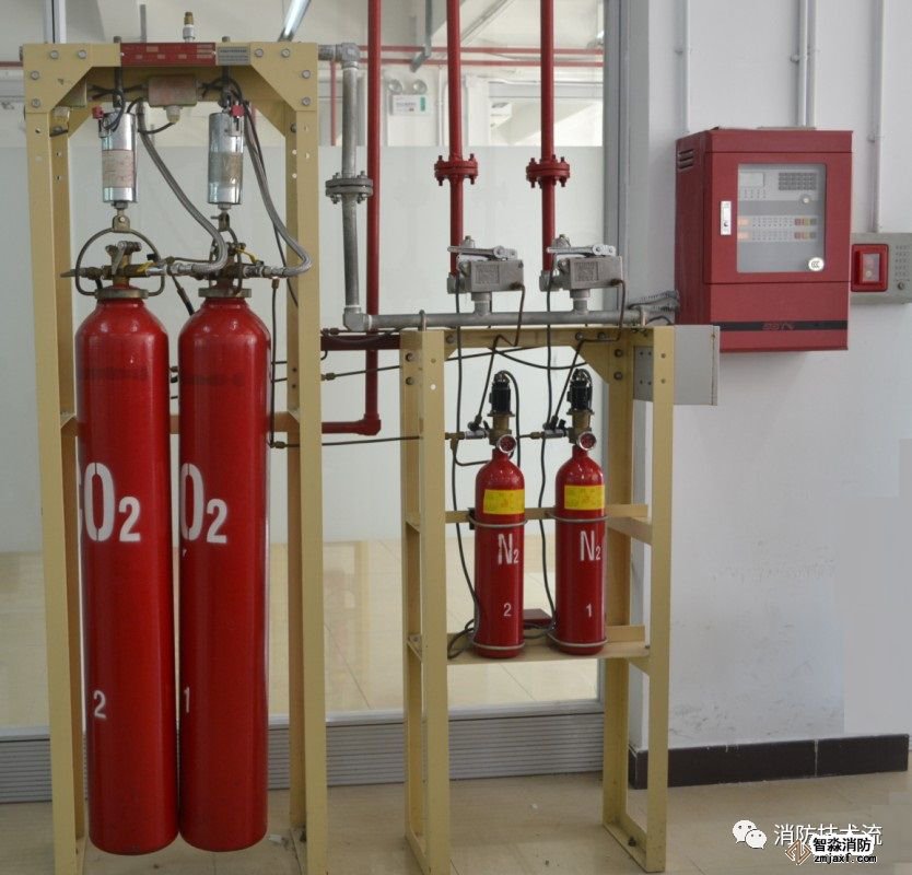 混合氣體IG-541滅火劑,是一種既不支持燃燒又不與絕大部分物質發生反應的氣體,其本身來源豐富,可從空氣中制取。它是以物理方式進行滅火的,即通過減少火災燃燒區域空氣中的氧含量而達到滅火效果。
