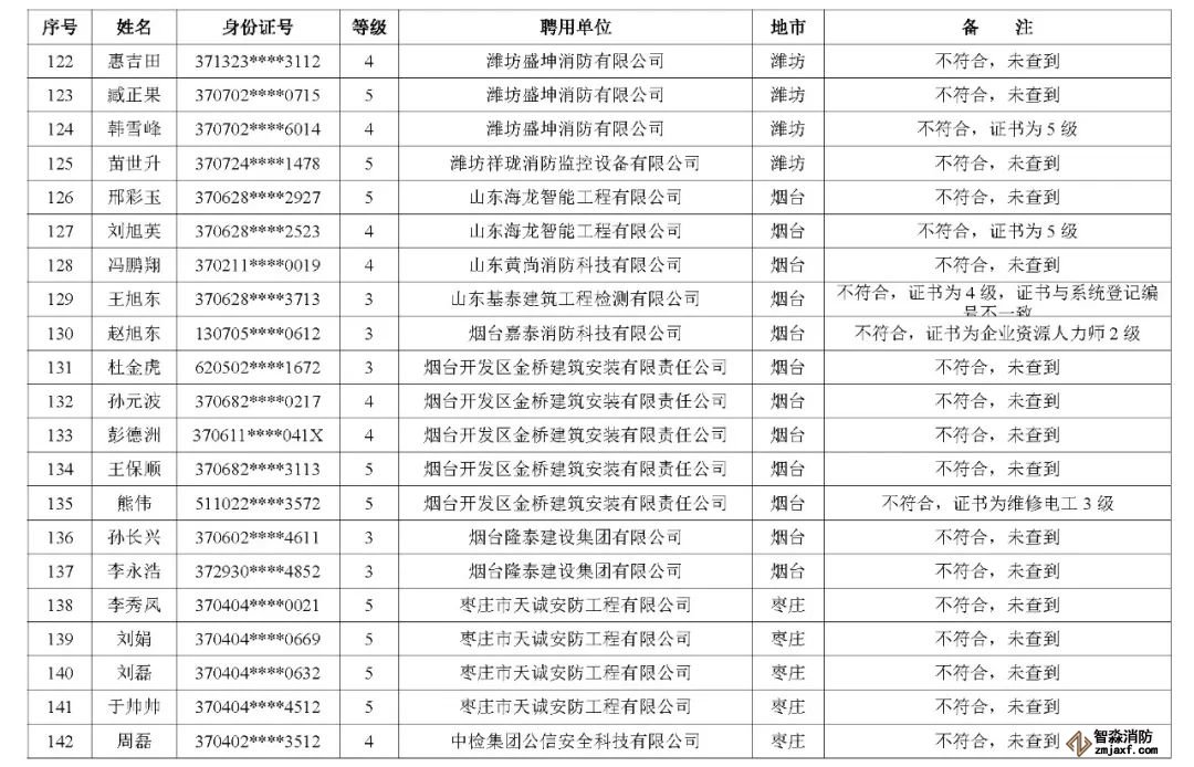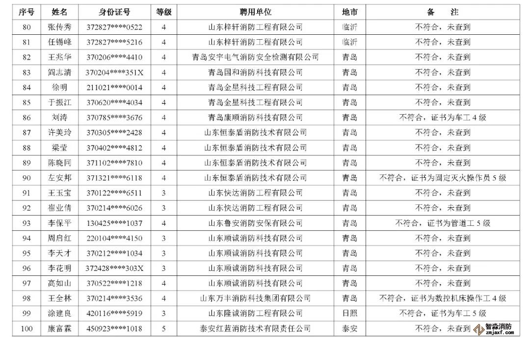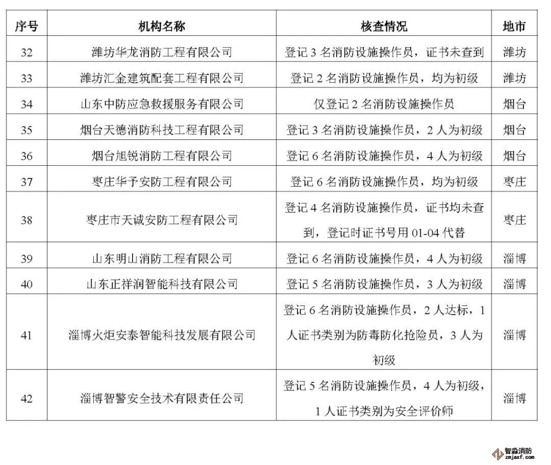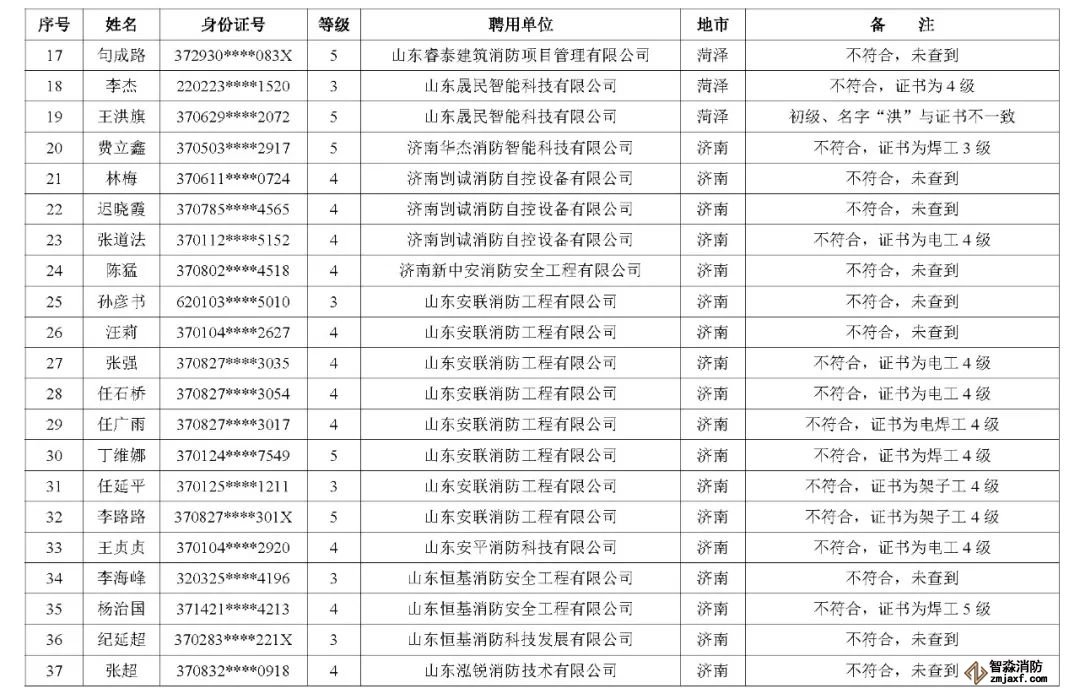 近日,山東省消防救援總隊辦公室通報了對消防技術服務機構從業(yè)人員資格核查情況: