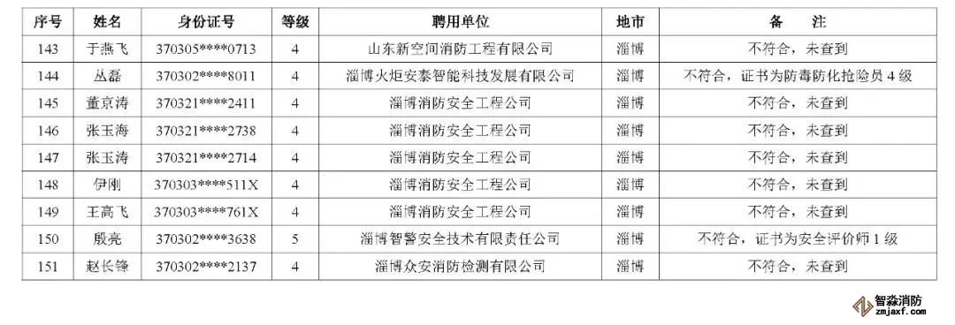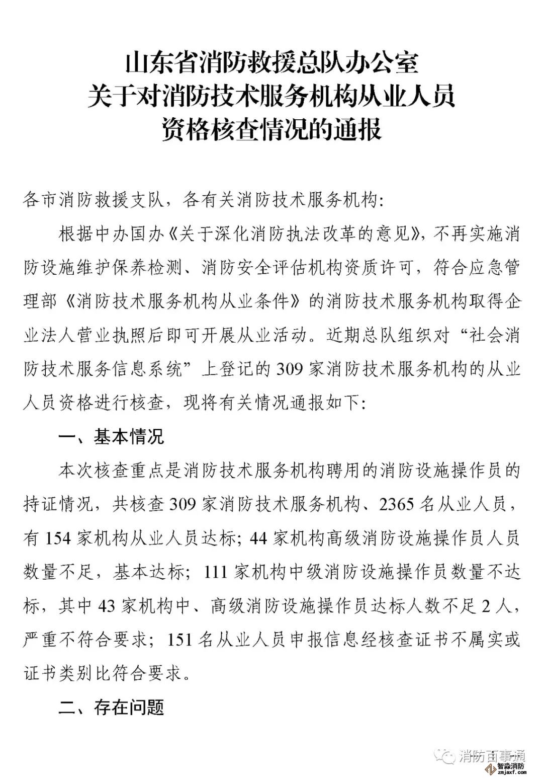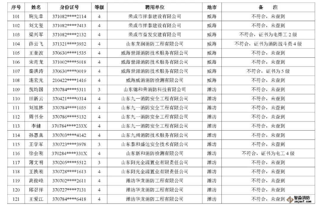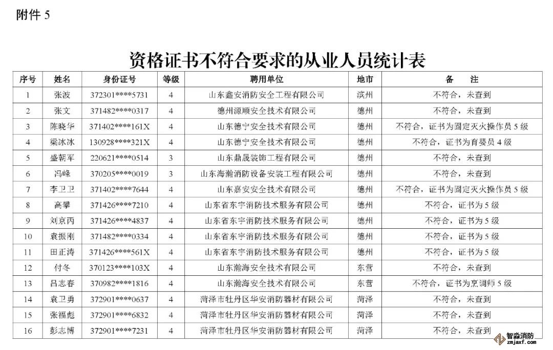 近日,山東省消防救援總隊辦公室通報了對消防技術服務機構從業(yè)人員資格核查情況: