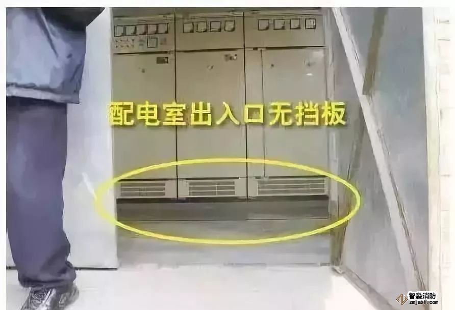 隱患危害:當配電室發生較大安全事故時,向內開啟的門將為人員的逃生增加阻礙,材質不達標則會在人員逃生過程中增加觸電風險。