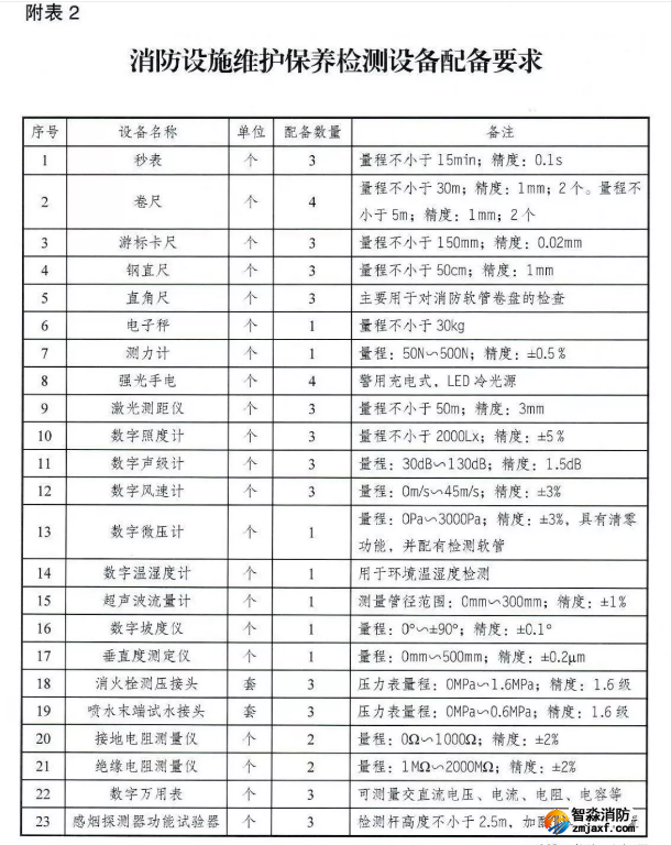 消防設(shè)施維護(hù)保養(yǎng)檢測設(shè)備配備要求