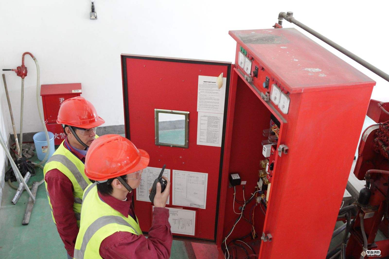 3、檢查消防供水設施:消防水池外觀,消防水箱外觀,消防水泵及控制柜工作狀態,穩壓泵、增壓泵、氣壓水罐工作狀態,水泵結合器外觀、標識,管網控制閥門啟閉狀態,泵房工作環境。