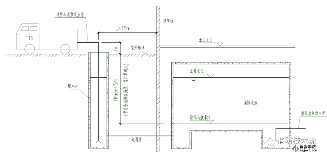 1)消防水池設(shè)置有取水口或取水井的(供消防車取水的消防水池),觀察取水口或取水井的吸水高度不大于 6.0m。