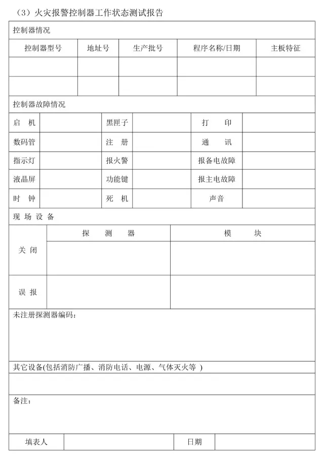 (1)各類探測器火災報警的測試。