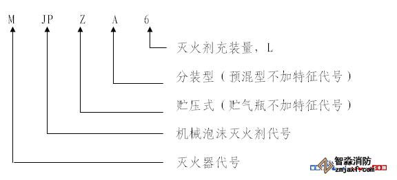 注: ㈠預(yù)混型,機(jī)械泡沫滅火劑原液與清水,預(yù)先按比例混合后,一起裝入滅火器內(nèi)。